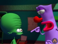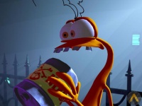 Tehát a csapat nekilátott a Stupid Invaders elkészítéséhez, ami a francia UbiSoft gondozásában megjelenő kalandjáték lesz. A játék címe teljes mértékben kizárja a komolyság lehetőségét. Az epilepszia figyelmeztetés helyett, ami már annyira megszokottá vált, ebben a játékban a következő figyelmeztetés fog szerepelni: “Az érzékeny elmék tartózkodjanak a játéktól. Szélsőségesen erőteljes nevetés várható.” Nos, az ilyen intéseket szeretem igazán. Hamon megemlítette, hogy ő leginkább a szereplők vicces párbeszédeit szereti.