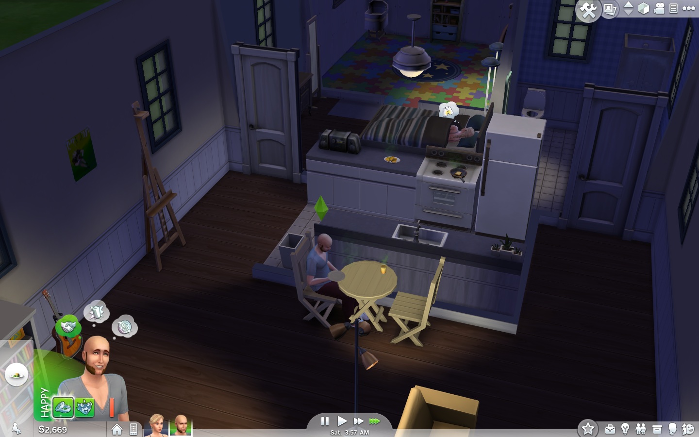 Jó dolog például, hogy párunkkal elmehetünk a közeli bárba, de ha ott csak ihatunk és táncolhatunk, nem igazán szeretnénk újra visszatérni. Alapvető probléma továbbá, hogy a készítők még mindig nem tudtak mit kezdeni a 24 órás rendszerrel, így bár gyorsíthatjuk az időt, lassításra még mindig nincs lehetőségünk, holott gyakran túl kevésnek tűnik az a néhány óra, amit valóban azzal tölthetünk el, amit mi szeretnénk. Nyilván, ez a való életben is így van, de a The Sims 4 egy játék, és játszani szeretnénk, nem az ikont nézni, hogy simünk alszik vagy munkában van valahol, mert természetesen a szabadság korlátozása miatt még a munkahelyre sem látogathatunk el.