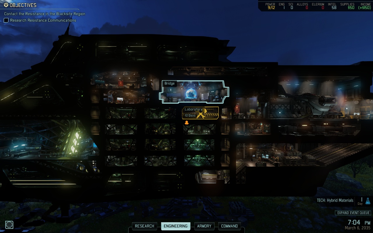 Ennek köszönhetően érdemes lesz megfontolt taktika mentén haladni előre - a kampány ebből a szempontból nem sürget, sőt nagyon sok alternatívát ad a biztonságos berendezkedésre a változatos, ámde szabadon választható mellékküldetésekkel -, aminek köszönhetően központi bázisunkat egy valóban erős védvonallá tehetjük. Itt toborozhatjuk majd például az újabb katonákat, akik sérülés esetén szintén a hajón gyógyulnak majd, de például a kutatólaborban aggathatunk rájuk újabb fejlesztéseket, megváltoztathatjuk a felszerelésüket, amennyiben pedig megfelelő technológiákat kutattunk, akár még idegenektől származó fegyverekkel vagy kiegészítőkkel is elláthatjuk őket.