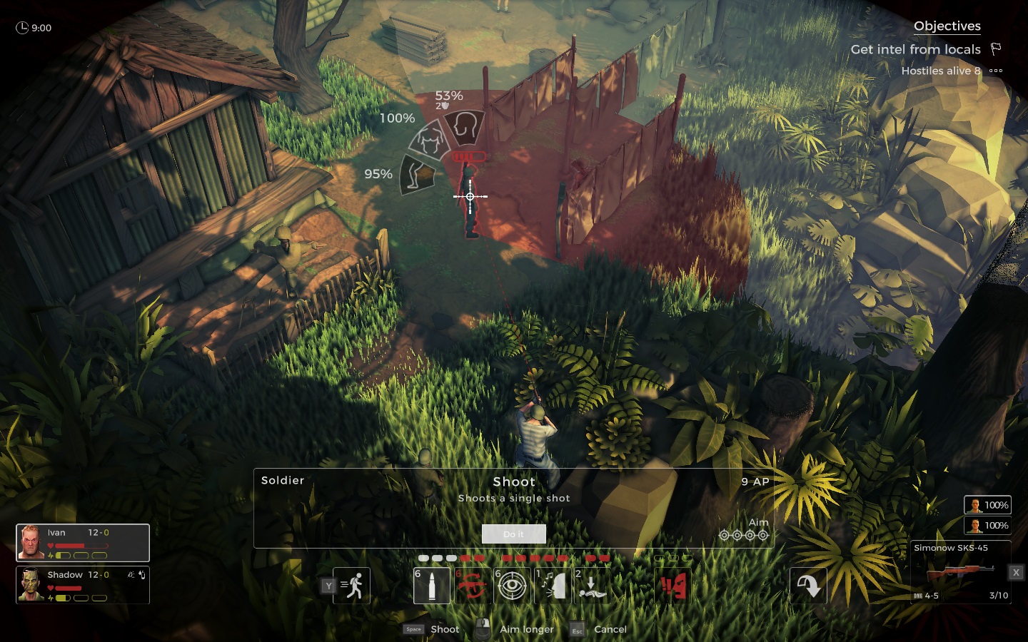 A dzsungeles közeghez mérten meglepően változatos helyszínekre lépve minden karakterünkkel erősen korlátozottak leszünk a cselekvésünkben, hiszen csak a rendelkezésünkre álló pontok felhasználásával közlekedhetünk majd, de cselekvéspontba kerül a támadás, a rejtőzködés, az újratöltés, a fegyverszerelés, vagy a speciális képességek alkalmazása is, tehát érdemes lesz ügyesen gazdálkodni. Hőseink saját kis inventoryval rendelkeznek, amit az elesett katonák vagy a pályákon található ládikák és egyebek kifosztásával tölthetünk fel, ezáltal vihetünk velük több fegyvert, lőszert, élelmet, vizet, kötszert, de aggathatunk rájuk különféle páncélokat is. Lehetőségeink tehát ezen a téren is elég korlátozottak, így érdemes jól meggondolni, hogy kitől és mit veszünk el, hovatovább miként csoportosítjuk a dolgokat a hátizsákban, de jó tanács, hogy ha tehetjük, mindig kutassunk át mindent, és soha ne lépjünk üres vagy hiányos zsebbel a következő szintre.