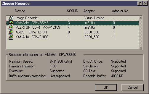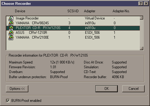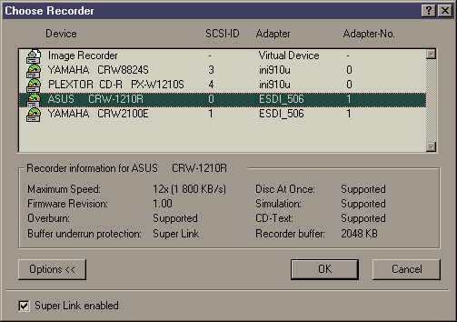 | ASUS 1210R | LG 8080B | Plextor 1210TS | Sony CRX 160E | TEAC W58E | Yamaha 8824S | Yamaha 2100E | |