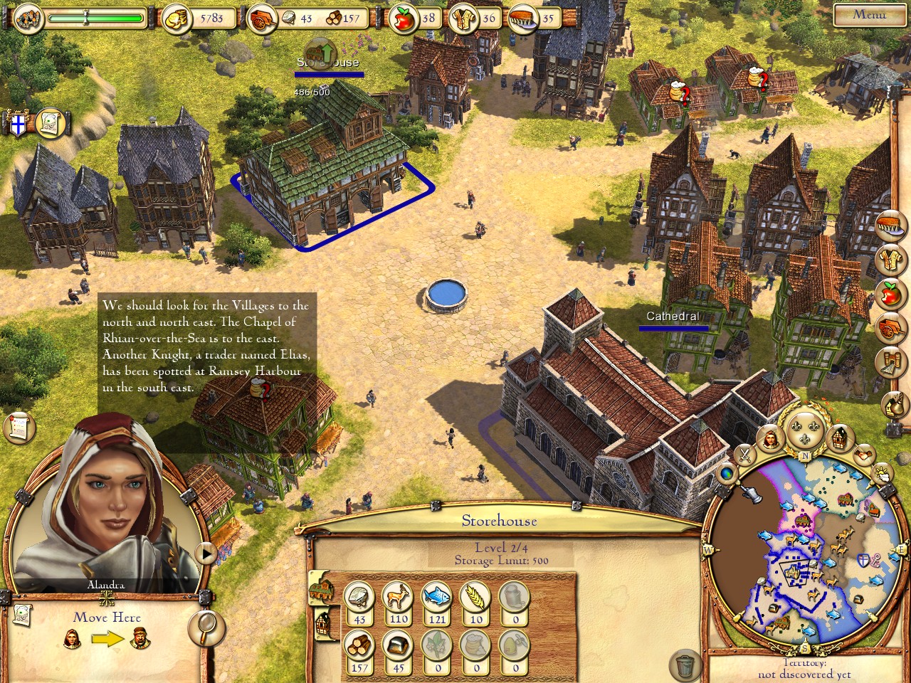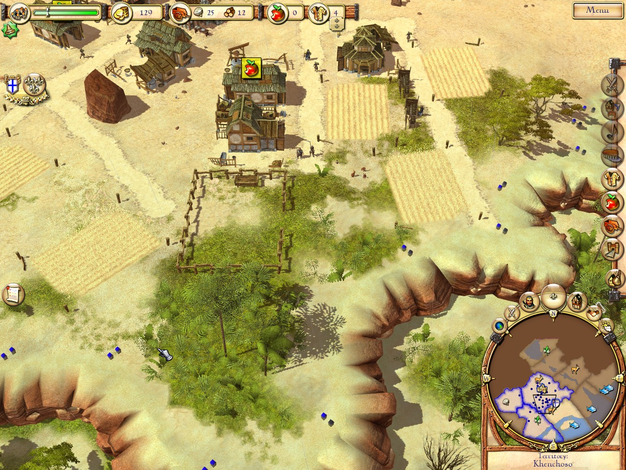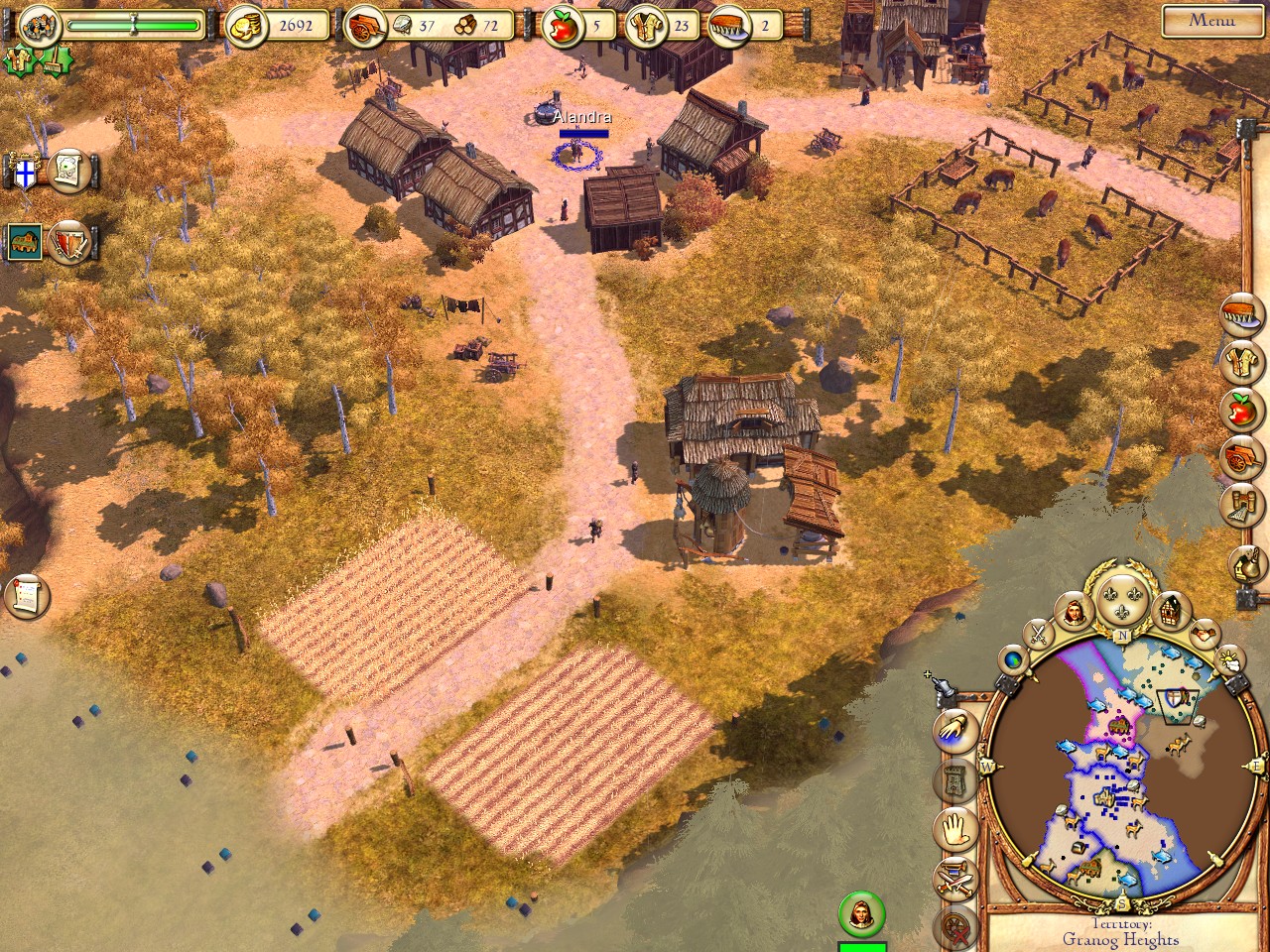 A körök természetesen mindig ott kezdődnek, hogy fel kell építeni a települést és ki kell elégíteni minél több igényüket a népnek és egyre magasabb rangot illik elérni a hőssel. Az első igény persze a kaja. Erre több lehetőség is kínálkozik. A legkézenfekvőbb a vadállatok leölése és a húsukból való kolbászkészítés. Az állatbarát módszer persze a gabona-liszt-kenyér vagy a boci-tej-sajt kombó. Ami viszont szomorú, hogy már itt látszik, hogy sokat egyszerűsödött a játék menedzsmentje és nem nagyon kell hosszú ipari láncokat létrehozni, hanem a búzamezőről egyből a sütödébe megy az anyag, malom például nem is kell.