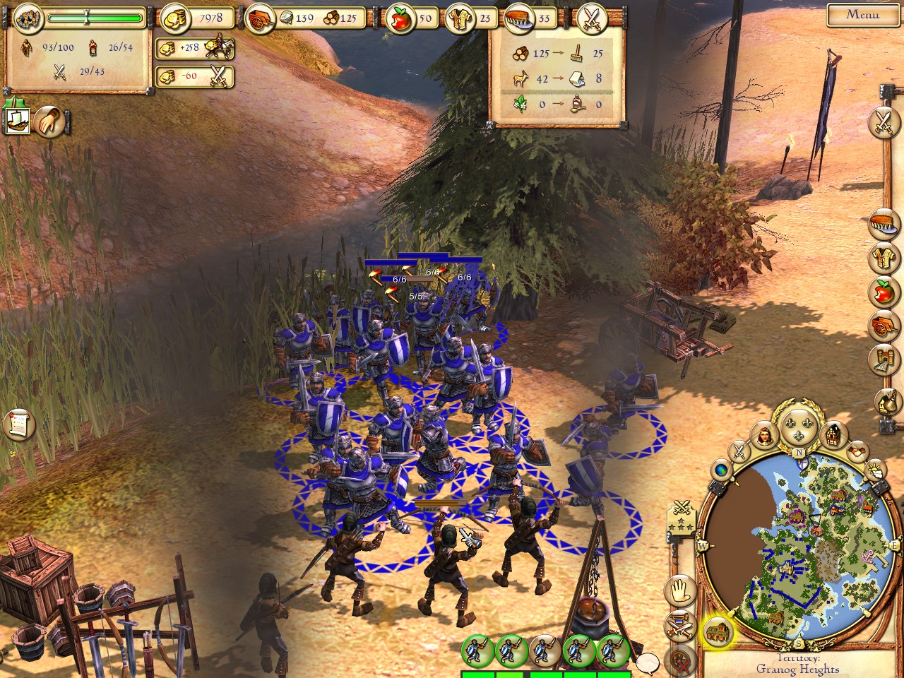 A hadakozást sem bonyolították túl, ami viszont pozitív, hiszen ez nem egy kifejezett háborús stratégia. A vas és a pénz kell minden katonához, akik lehetnek kardos emberkék és íjászok. A zsold emelésével erősebbé válnak, tehát legalább a háború előtt érdemes felhúzni őket, különben az erősebb kutya **szik elve érvényesül. Ha az ellenfélnek 8, nekünk pedig 7 csapatunk van, akkor ő győz. A gyalogos egységek mellett persze a harc kimenetelét erősebben befolyásolja, hogy vannak-e falak, azok fából vagy kőből vannak-e és hogy milyen ostromgépek állnak rendelkezésre. A fakerítést simán fel lehet gyújtani, míg a kőfalhoz mindenképp ostromgép kell. Vagy a kaput lehet betörni a faltörő kossal vagy a falakat lebontani mondjuk egy katapulttal. Az íjászok viszont femászhatnak a falra és onnan szedik le a kint várakozó embereket.