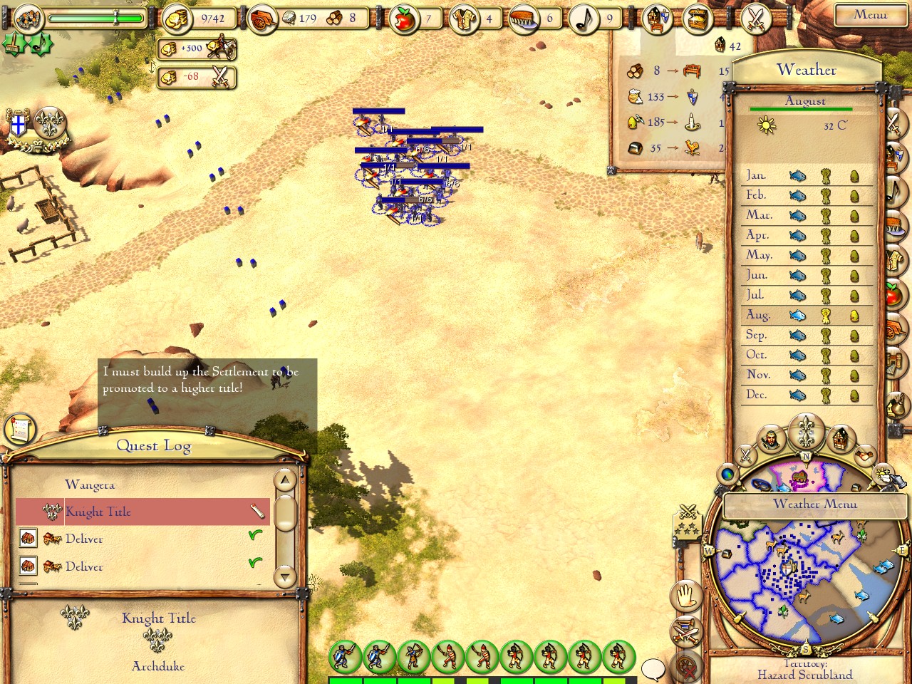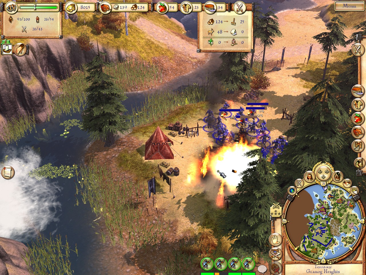 Arról nem is beszélve, hogy sokszor hiába gyilkolta le a seregem a konkurenciát, sem ők, sem a hős nem tudott mit kezdeni vele, az már azé maradt, akié volt. Pedig elméletileg elegendő az ellenség őrtornyát lezúzni és akkor elpusztul minden más. Ez is mekkora hülyeség. Fekete pont a Blue Byte-nak, ez nem volt szép tőlük. Némileg vigasztal cserében a klímakérdés. A pályák legalább háromféle éghajlathoz tartozhatnak, ami nem csak a dizájnt befolyásolja, de komoly különbségek lesznek az adott pálya játékmenetében is. Az északi területeken hideg van, hosszú tél, középen normál négy évszakos körforgás, mint amilyen nálunk is volt pár éve még, délen pedig sivatagi körülmények uralkodnak, ahol tél nincs, de cserébe víz is kevesebb és a termőtalajt is jól be kell osztani.