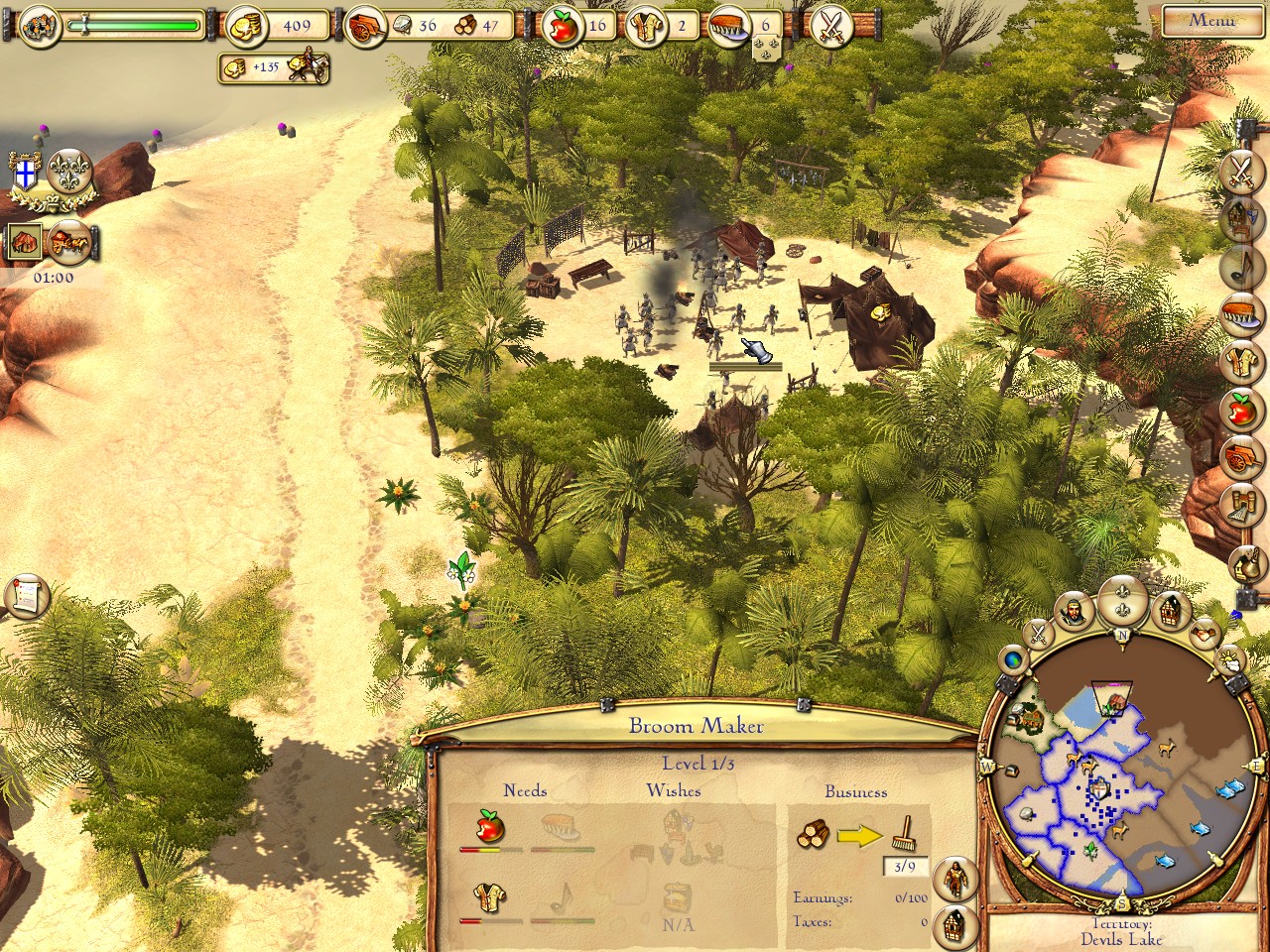 A fából például nem csak építkezni lehet, de a seprűhöz is ez kell, illetve az asztalos is igényel belőle a padokhoz. Ugyanakkor a vadakból nem csak kolbász lesz, hanem bőrruha is készül belőlük. Szerencsére viszont az egyszerűsítés miatt nem is kell molyolni a dolgokkal, ha egyszerűen nincs valamiből elegendő, akkor építeni kell olyan épületet, ami azt készít vagy venni kell kereskedő partnerektől. Lehetne még folytatni ezt a bekezdést, csak nem nagyon van miről írni, mert körülbelül ennyiben kimerül a stratégia.