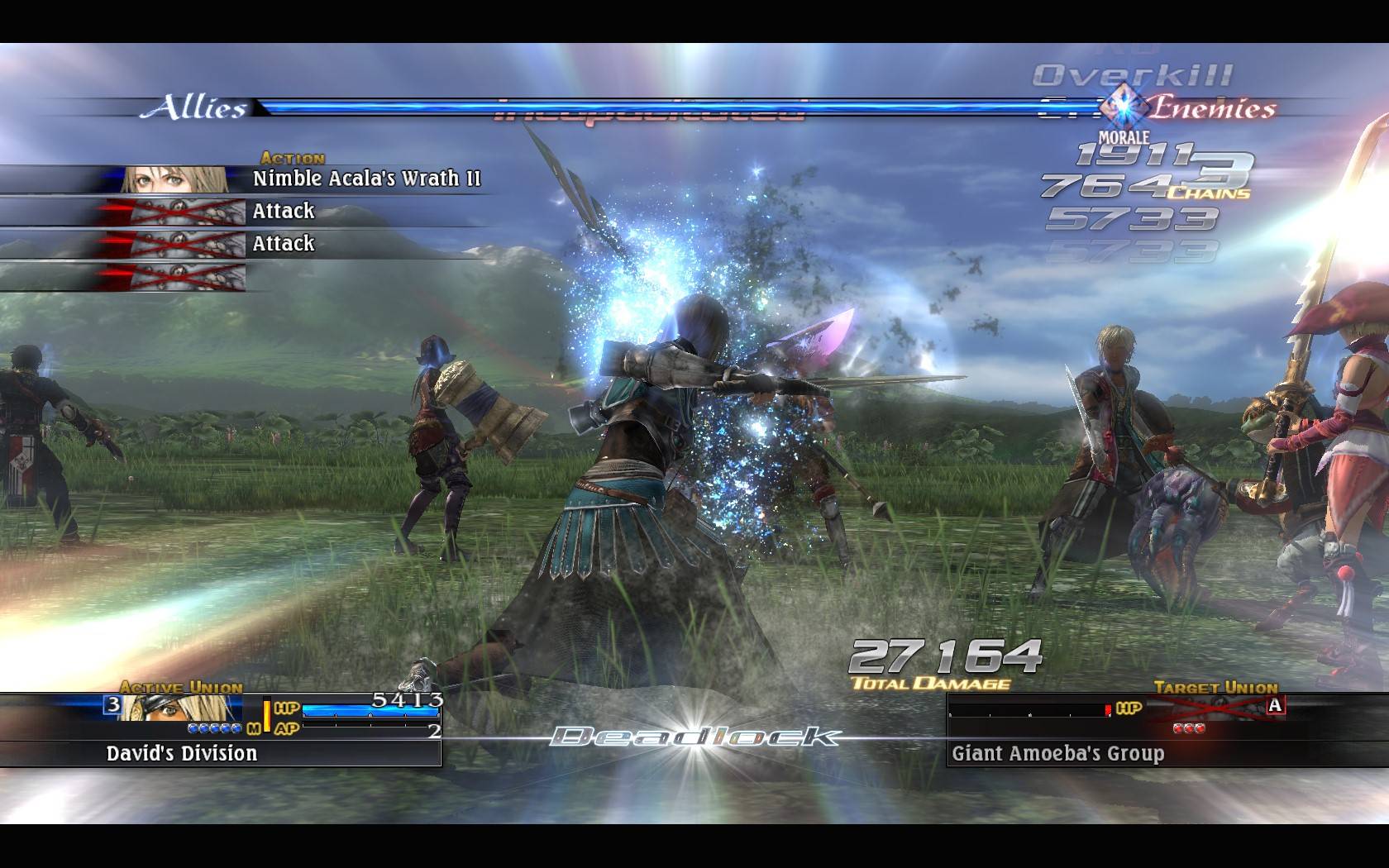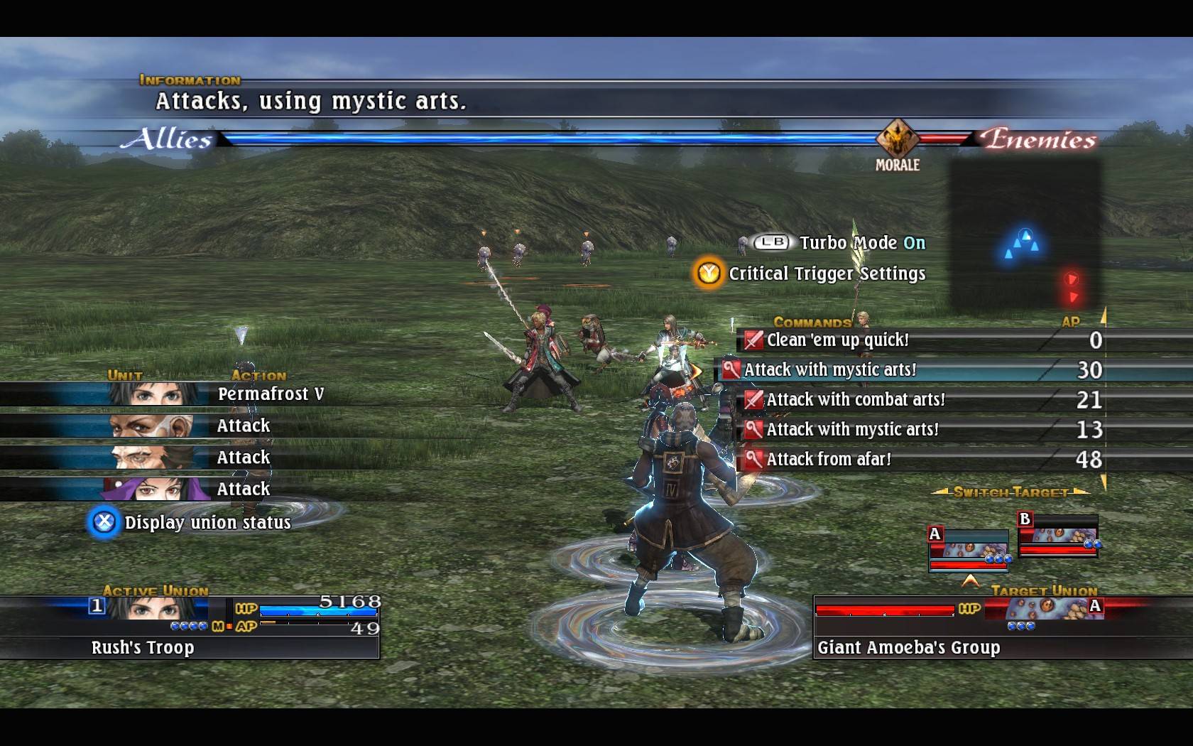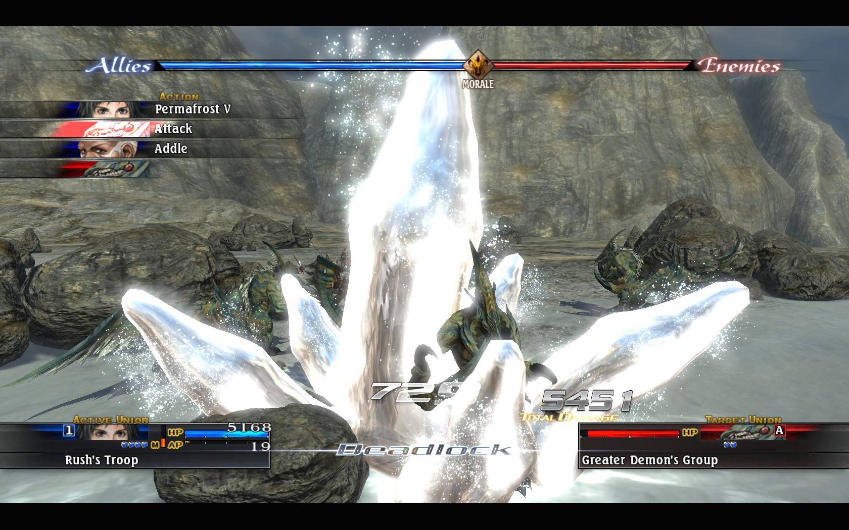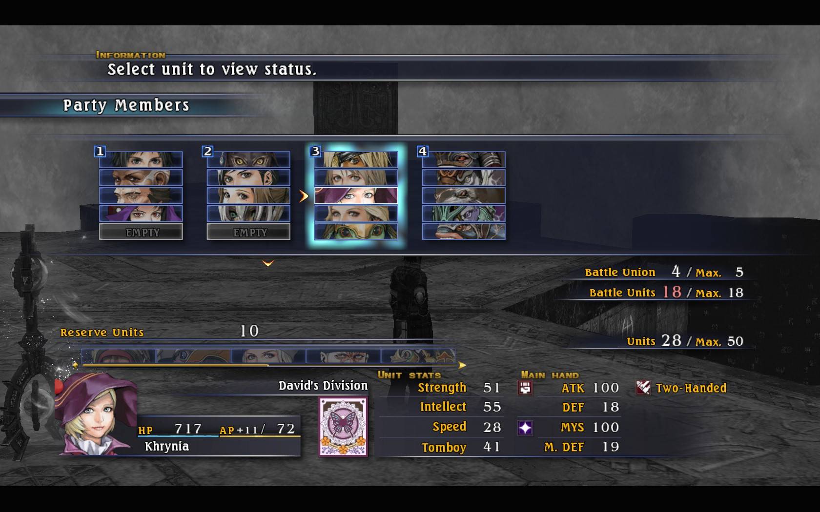 Emiatt az egységeinket kisebb csapatokba sorolhatjuk, melyekből legfeljebb öt lehet, és egy csapat maximum öt emberből állhat. (Gyors fejszámolással kikövetkeztethető, hogy nem tudunk minden helyet kihasználni, mivel nem lesz elég emberünk, hogy feltöltsük őket). Ezeket az uniókat (ahogy a játék nevezi őket) minden kör elején általános parancsokkal láthatjuk el, és ők ennek megfelelően cselekednek. A parancsok között megtalálhatjuk az unalomig ismert támadj/varázsolj/gyógyulj lehetőségeket, de gyakran ennél összetettebb utasítások is felbukkannak, a "csökkentsd a morált"-tól a "mindent bele, srácok"-on át az "intézzétek el a vezért"-ig.