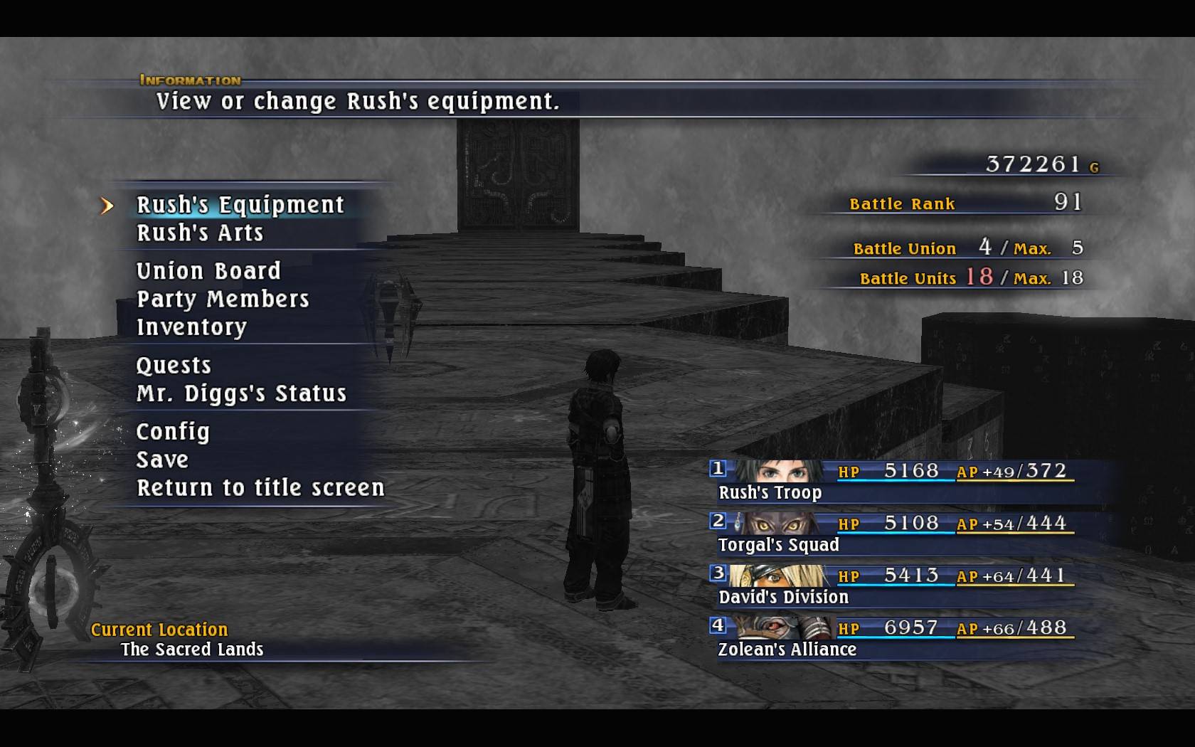 Hamarosan egy tisztás mellett találja magát, melyen két hatalmas sereg gyülekezik, hogy összecsapjanak egymással. Itt máris tanulságot tesz a játék folyamán többször is megnyilvánuló lenyűgöző intelligenciájáról: saccra 15-16 éves, miniszoknyába öltözött húgának véli az egyik sereg kellős közepén ácsorgó kb. 40 éves, teljes páncélzatban és fegyverzetben feszítő Emmát, és a segítségére siet. Persze, mire rájön, hogy ezt benézte, addigra már egy földalatti barlangban találja magát a meglehetősen morcos hölggyel. Később találkozik Emma seregének többi jeles képviselőjével (David Nassau márkival és leghűségesebb embereivel), akik úgy döntenek, hogy segítenek megtalálni Irinát. JRPG-hez illő módon a történet tovább bonyolódik, és hamarosan már az egész világ sorsa forog kockán.