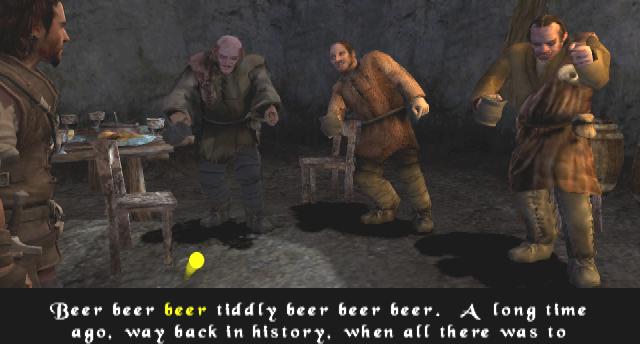 Az elhangzó mondatok tele vannak gegekkel és aki nem is szereti ezt a játékműfajt, de odavan Monty Pythonért, annak kötelező darab. Erre a betétdalok már csak rátesznek egy lapáttal, ilyenkor egyébként sincs mit csinálni, nevessünk nyugodtan. A dalok szövege alul látható és karaoke mintára egy kis labda pattog a szöveg tetején, így rutinos játékosok akár énekelhetik együtt őket.