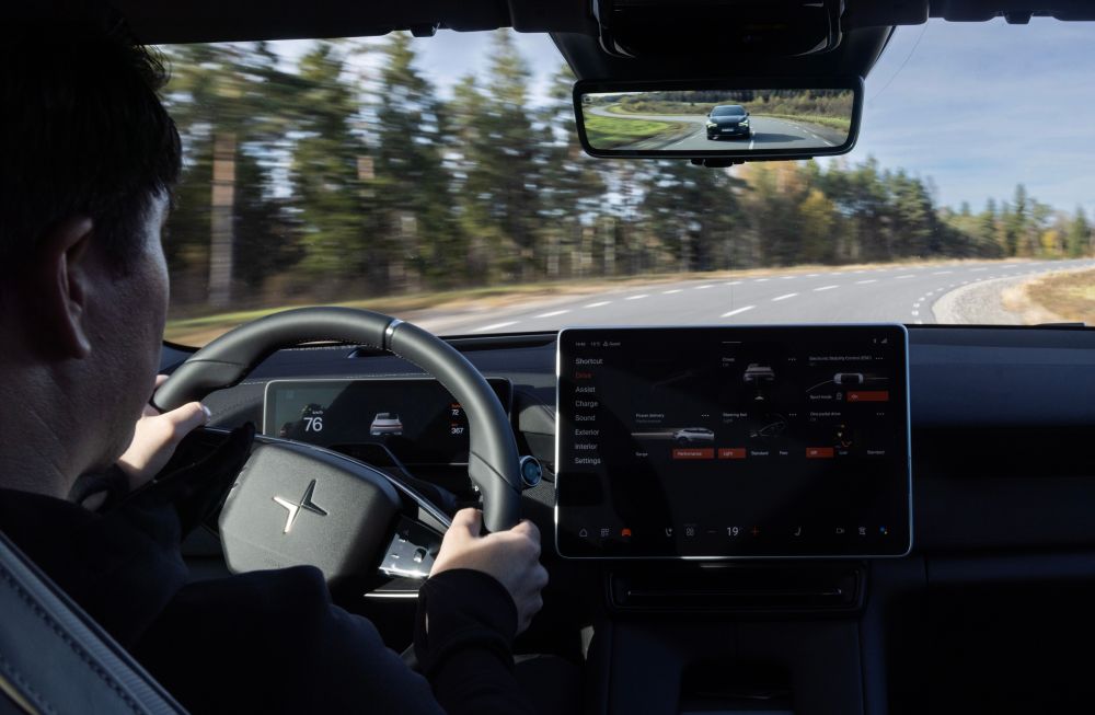 A Polestar SUV kupénak nevezi termékét, amelyben a kijelző megmaradt hagyományos tükör formájú. A kép meggyőzően tükörszerű, fordított, megfelelő fókusztávolsággal, jó felbontással és alacsony fényviszonyok mellett is működő érzékenységgel, így könnyű benne megbízni a távolságok megítélésekor, amit grafikus segédvonalak és figyelmeztető hangok is támogatnak. Kiváló automatikus sötétítési algoritmusokkal is rendelkezik. Ugyan a fizimiskánk nem ellenőrizhető rajta, de arra ott a telefon.