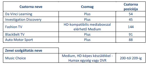 A közlemény szerint a MUSIC CHOICE nevű zenei csomag 10 digitális zenecsatornát tartalmaz, mely most szintén elérhetővé válik a UPC Direct ügyfelei számára. Március 10-től kezdődően a UPC Direct ügyfelei új, nemzetközi csatornákat élvezhetnek, köztük jól ismert márkákat, mint a Discovery, valamint új, feltörekvő márkákat, melyek olyan új műfajokat ismertetnek meg, mint a küzdősportok, a divat és az autóversenyzés.