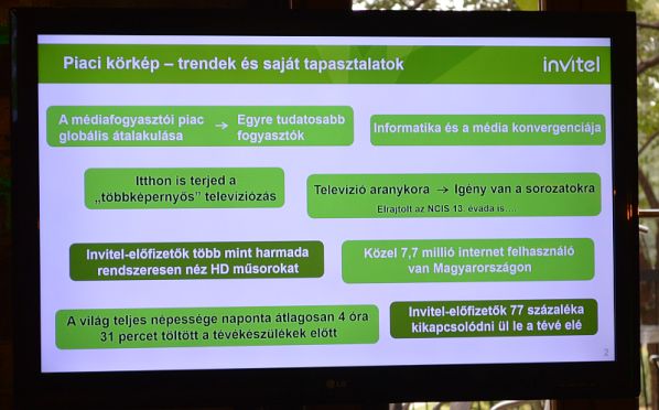 Iski István, az Invitel marketingigazgatója a tematikus csatornák jelentőségét emelte ki, de sajnos a szabad csatornaválasztás még messze van. "Az ennyire személyre szabott tévézés még mindig egy olyan utópia, amit nem tudunk megvalósítani." - fogalmazott. Megemlítette még a nagyfelbontású adások sikerét, 28 HD csatornájuk van, melyeket az ügyfelek keresnek is.