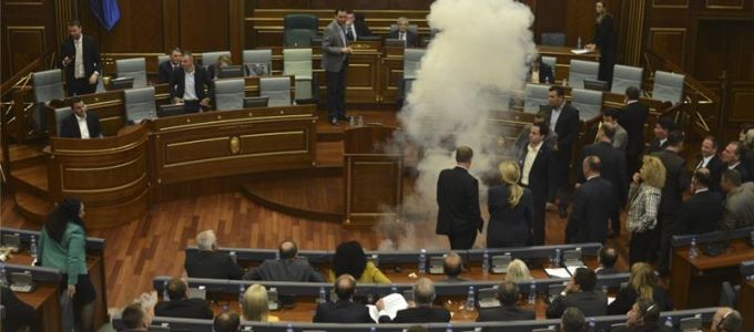 A koszovói kormány szerdai döntésének megalapozottságát már a csütörtöki nap is bizonyította, amikor a koszovói ellenzék kétszer is könnygázgránát aktiválásával, egyszer Isa Mustafa kormányfő leöntésével, egyszer pedig a belügyminiszter arcára irányított vörös lézermutatóval akadályozta meg, hogy folytatódhasson az ülés.