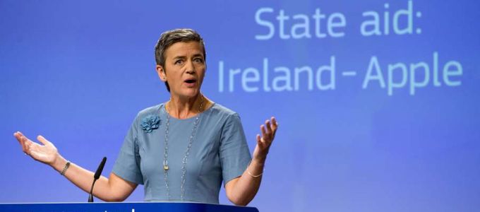 "A tagállamok nem adhatnak adókedvezményt szelektíven kiválasztott vállalkozásoknak – ez az állami támogatásra vonatkozó uniós szabályok szerint jogellenes. A Bizottság által elvégzett vizsgálat azzal a következtetéssel zárult, hogy Írország jogellenes adóelőnyt nyújtott az Apple-nek, így az sok évig más vállalkozásoknál lényegesen kevesebb adót fizetett. E szelektív bánásmód következtében az Apple 2003-ban 1 %-os mértékű tényleges társasági adót fizetett az Európából származó nyeresége után; ez az adómérték 2014-re 0,005 %-ra csökkent." - nyilatkozta Margrethe Vestager versenypolitikáért felelős biztos.