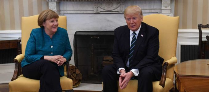 Meglepte az elnök a kancellárt az Ovális Irodában is. Amikor ugyanis a megbeszélések után pár percre beengedték fotózni a sajtómunkásokat, hiába kérlelték Donald Trumpot, hogy a fotó kedvéért fogjon kezet Merkel kancellárral, az Egyesült Államok elnöke némi grimaszolás közepette elengedte a füle mellett a kérést, és meg sem moccant. A jelenetet Angela Merkel feszengő mosolya kísérte. A két vezető politikus egyébként Merkel Fehér Házba érkezésekor kezet fogott egymással.