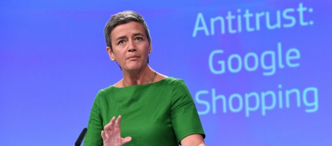 Margrethe Vestager, versenypolitikáért felelős biztos bejelentette, hogy az uniós trösztellenes szabályok megsértése, hogy a cég előnyt biztosított egy másik Google-szolgáltatásnak, a Google ár-összehasonlítójának. A társaságnak 90 napon belül fel kell hagynia a jogsértő magatartással, máskülönben kényszerítő bírságot kell fizetnie, amely elérheti a Google anyavállalata, az Alphabet átlagos napi globális forgalmának 5%-át. "A Google saját ár-összehasonlító vásárlási szolgáltatásával kapcsolatos stratégiája nem csupán arról szólt, hogy a versenytársakénál jobb minőségű szolgáltatással szerezzen a cég vevőket. A Google visszaélt piaci erőfölényével, mivel a keresőmotorját úgy állította be, hogy az a keresési találatok között előnyben részesítette a cég saját ár-összehasonlító szolgáltatását a versenytársakéival szemben." - mondta Vestager. "Magatartásával lehetetlenné tette, hogy a versenytársak egyenlő feltételekkel vegyenek részt a piaci versenyben."