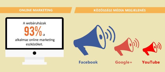 A hazai webáruházak 93%-a használ valamilyen online marketing eszközt, szemben az offline megoldásokkal, amelyeket csak az online áruházak fele vesz igénybe.