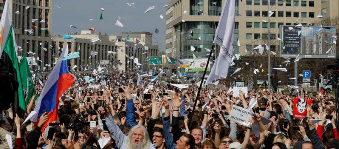 Több ezren tüntettek Moszkvában a Telegram üzenetküldő szolgáltató oroszországi hatósági blokkolásának kísérlete ellen és az internet szabadsága mellett.