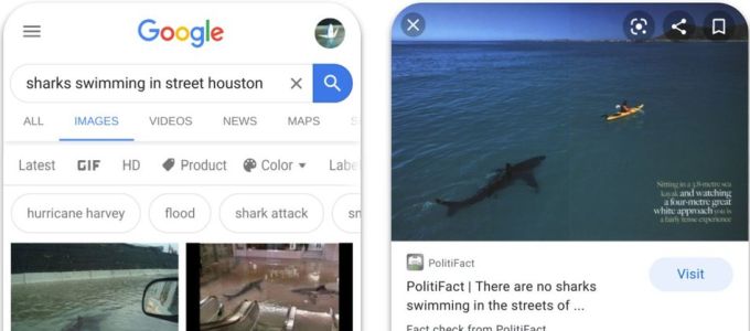 Harris Cohen, a Google keresési termékmenedzsere a blogbejegyzésében leírt egy példát, amely alapján, ha valaki a cápa és a Houston szavakra keres rá, akkor olyan felvételek jelennek meg, amelyek azt mutatják, ahogy egy állítólagos cápa egy autó mellett úszik. A kapcsolódó hivatkozások ugyanakkor olyan hírportálokra mutatnak, amelyek arról írnak, hogy ezek hamis képek. A tényellenőrzési jelölések közvetlenül a keresési áttekintőben jelennek meg, majd a fotókra való kattintáskor további információk válnak elérhetővé, amelyek felfedik az egyes felvételek hátterét.
