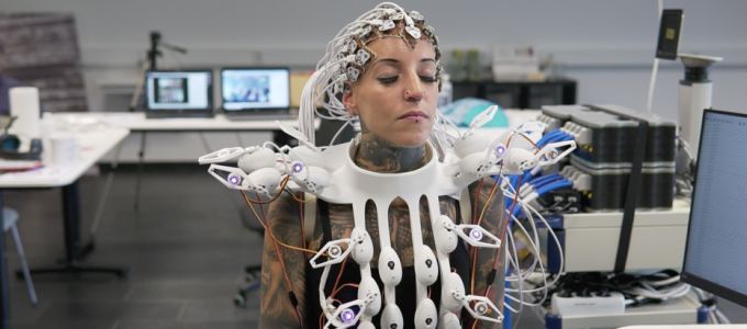 A rávarrt világító és mozgó elemeket a viselő az agyhullámaival vezérelheti.