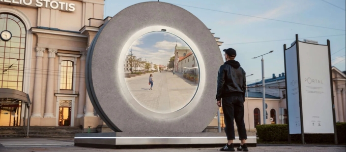 A litván főváros főpályaudvarának előterében szerelték fel az első olyan különleges kommunikációs portált, amelynek a segítségével a helyszínen élők valós idejű kapcsolaton keresztül átnézhetnek a Lublinban felállított hasonló portálba és láthatják az ott lévő személyeket, sőt, még interakcióba is léphetnek velük. A kommunikáció visszafelé is ugyanígy működik. A megoldás alapját olyan kamerák jelentik, amelyek élő stream-közvetítést kínálnak.