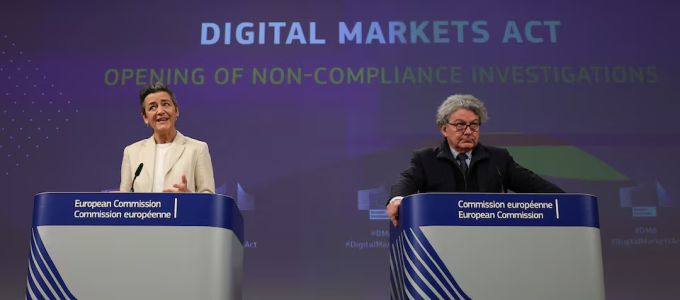 Margrethe Vestager brüsszeli sajtótájékoztatóján közölte, az előzetes vizsgálatok eredményei szerint feltételezhető, hogy az érintett vállatok nem kezdték meg a hónap elején életbe lépett, átjárhatósággal és versennyel kapcsolatos előírásokat tartalmazó szabályozás szerinti kötelezettségek betartását. A szabályozás szerint az "alapvető platformszolgáltatásokat" nyújtó, kapuőrnek nyilvánított vállatoknak fel kell számolniuk azokat a zárt technológiai rendszereket, amelyek a fogyasztókat egyetlen vállalat, főként saját termékeinek vagy szolgáltatásainak használta felé terelik. Kiemelte, a szabályozás előírja, hogy a vállalatoknak lehetővé kell tenniük, hogy "ingyenesen tereljék" a felhasználókat alkalmazásboltjain kívüli ajánlatokhoz. Az Európai Bizottság szeptemberben hat szolgáltatót minősített kapuőrnek, az Alphabet, az Amazon, az Apple, a ByteDance, a Meta és a Microsoft céget.