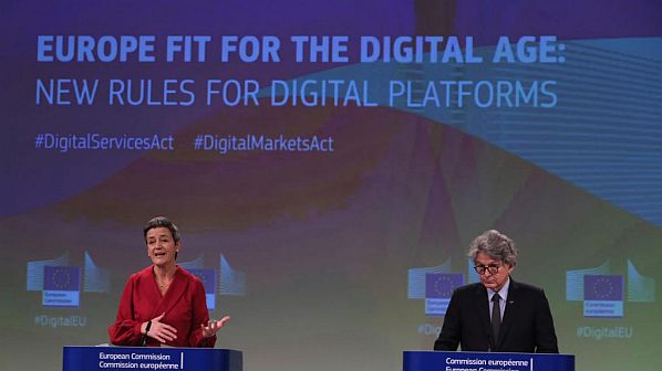 Az EU trösztellenes jogérvényesítése és a digitális szabályozás felbosszantotta a multinacionális informatikai vállalatokat, amelyek az 1990-es évek dotcom-boomja óta nagyrészt korlátlanul növekedhettek. A digitális piacokról szóló, különálló uniós technológiai versenyjogi jogszabály, a Digital Markets Act (DMA) általában nagyobb aggodalmat váltott ki az érintett vállalatokból, mint a DSA, mivel az egyes vállalatok üzleti modelljeinek megváltoztatását írja elő. Az európai tisztviselők szerint törvényeik támogatják a véleménynyilvánítás szabadságát.