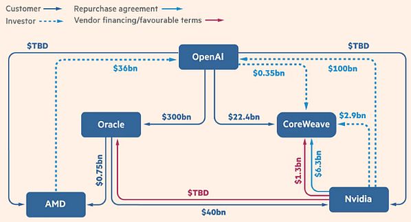 Ez az 1990-es évek végi dotcom-buborékra jellemző konstrukciókra emlékeztet - mondja Bill Janeway, a Warburg Pincus befektetési cég volt elnöke. Akkoriban egy szoftvercég egy új internetes médiavállalatnak hirdetési felületért fizetett cserébe azért, hogy a médiavállalat megvásárolja a szoftverét. Ez a mesterséges megállapodás mindkét vállalat szolgáltatásai iránti erősebb kereslet illúzióját keltette, teszi hozzá Janeway. A mai MI-infrastruktúra-boomhoz leginkább hasonló helyzetben a Lucent és a Nortel telekommunikációs berendezésgyártók az 1990-es években előleget fizettek ügyfeleiknek berendezések vásárlására, csakhogy az iparágat sújtó csődhullám miatt végül leírásokra kényszerültek.