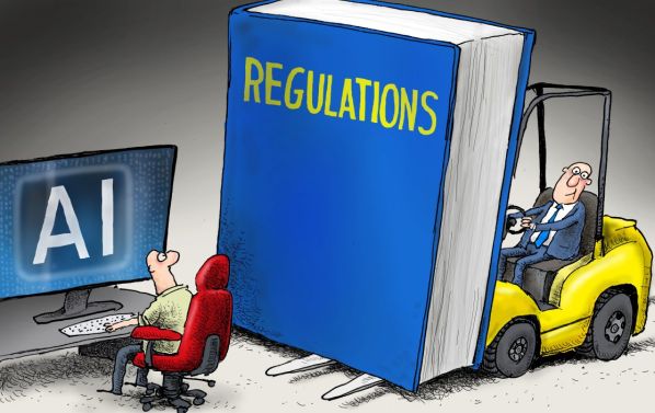 Európa érezhetően határozottabb szabályozási megközelítést alkalmazott. A mesterséges intelligenciáról szóló jogszabály, amely 2024. augusztus 1-jén lépett hatályba az EU-ban, Európa eddigi legátfogóbb kísérlete arra, hogy megfékezze azokat az MI-cégeket, amelyek nem a közérdeket szolgálják. A jogszabály nagyrészt a károk csökkentéséről szól. Kockázati kategóriákat hoz létre az MI-alkalmazások számára - a „minimális” kockázattól az „elfogadhatatlan” kockázatig, utóbbiak be vannak tiltva -, és a legtöbb MI-céget nagyobb átláthatóságra kötelezi működésük kapcsán.
