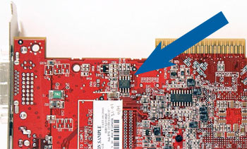 | Az LM63 itt látható ezen a Built By ATI (BBA) kártyán, tehát az OVERDRIVE funkció működik |