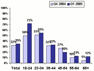 A digitális kamerák használata 2005 első negyedévében a 18 és 24 év közötti brit fiatalok esetében 72, míg a 25 és 34 év közötti britek körében 55 százalékkal nőtt. Mint azt Peter Larsen, az Enpocket ügyvezető igazgatója elmondta, egyre nyilvánvalóbb, hogy az MMS - bár koránt sem terjedt el annyira és hódította meg a világot olyan mértékben, mint elődje, az SMS - mégis egyre keresettebb, legalábbis Nagy-Britanniában.