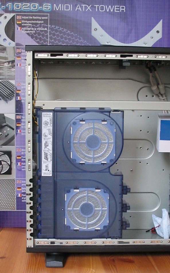 A részegységek hűtésére számtalan ventilátort építhetünk a gépbe, előlre egy 12 centist, hátulra két 9 centist, oldalaira pedig egy 8 és egy 9 centi átmérőjűt rakhatunk - egyik a merevlemezeket, másik a kártyákat tudja hűteni. Szerelés tekintetében kiemelendő, hogy míg a CD-ROM és a floppylemez megszorításához tekerhető csavarokat mellékenek a házhoz, illetve az alaplapra dugható bővítéseket is kézzel tudjuk rögzíteni, addig az oldalsó panelt a ma divatos módszerekkel ellentétben biztonsági okokból csak csavarhúzóval tudjuk eltávolítani.
