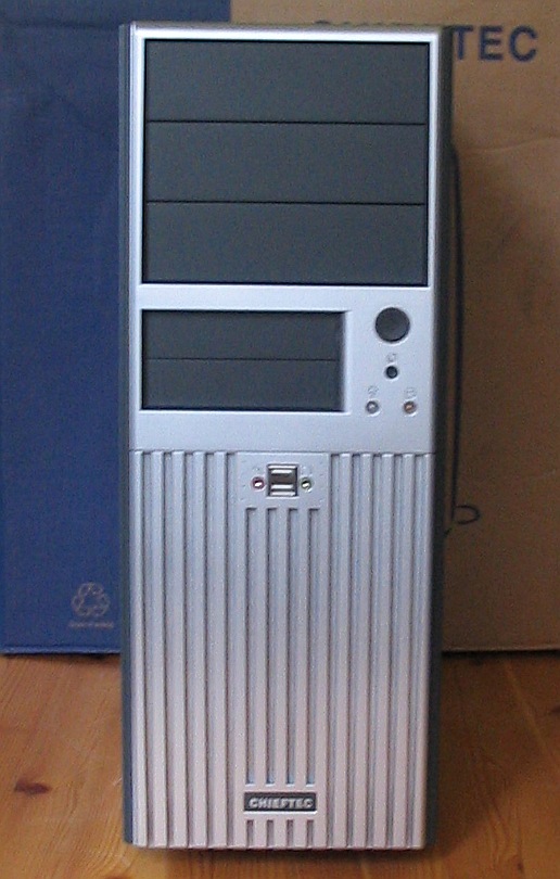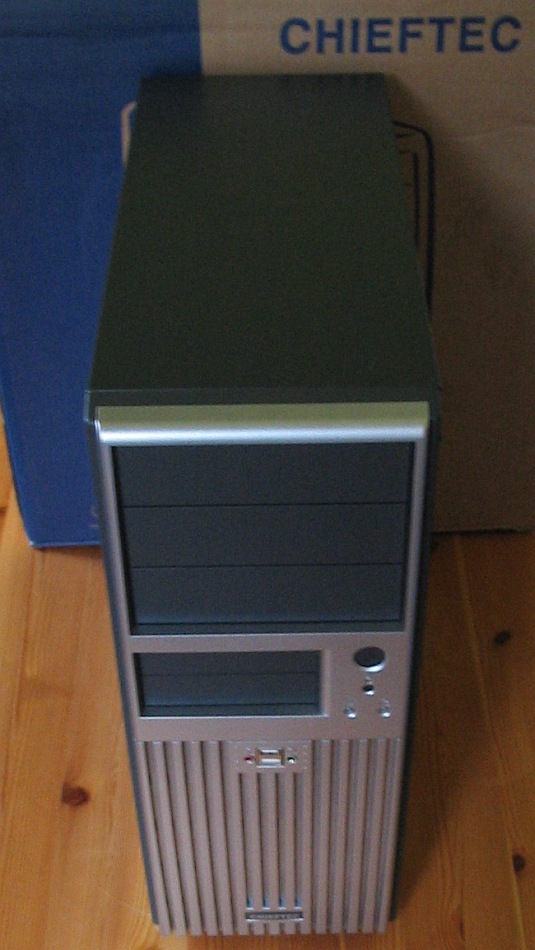 A Chieftec papírdobozból kibontása után első benyomásként jó értelemben vett puritánsága tűnik ki. A mai csicsás, eltúlzott optikai tuninggal a vevők kegyeít meghódítani kivánó házak közül a gyártók ugylátszik az egyszerüséggel akartak kitűnni. A minimalista dizájnú előlap összhatását csak a működést jelző ledhármas töri meg, mely elválasztja az alsó, a toronyházak kinézetét idéző függőleges csíkozást és a meghajtóknak felül kialakított rekeszeket.