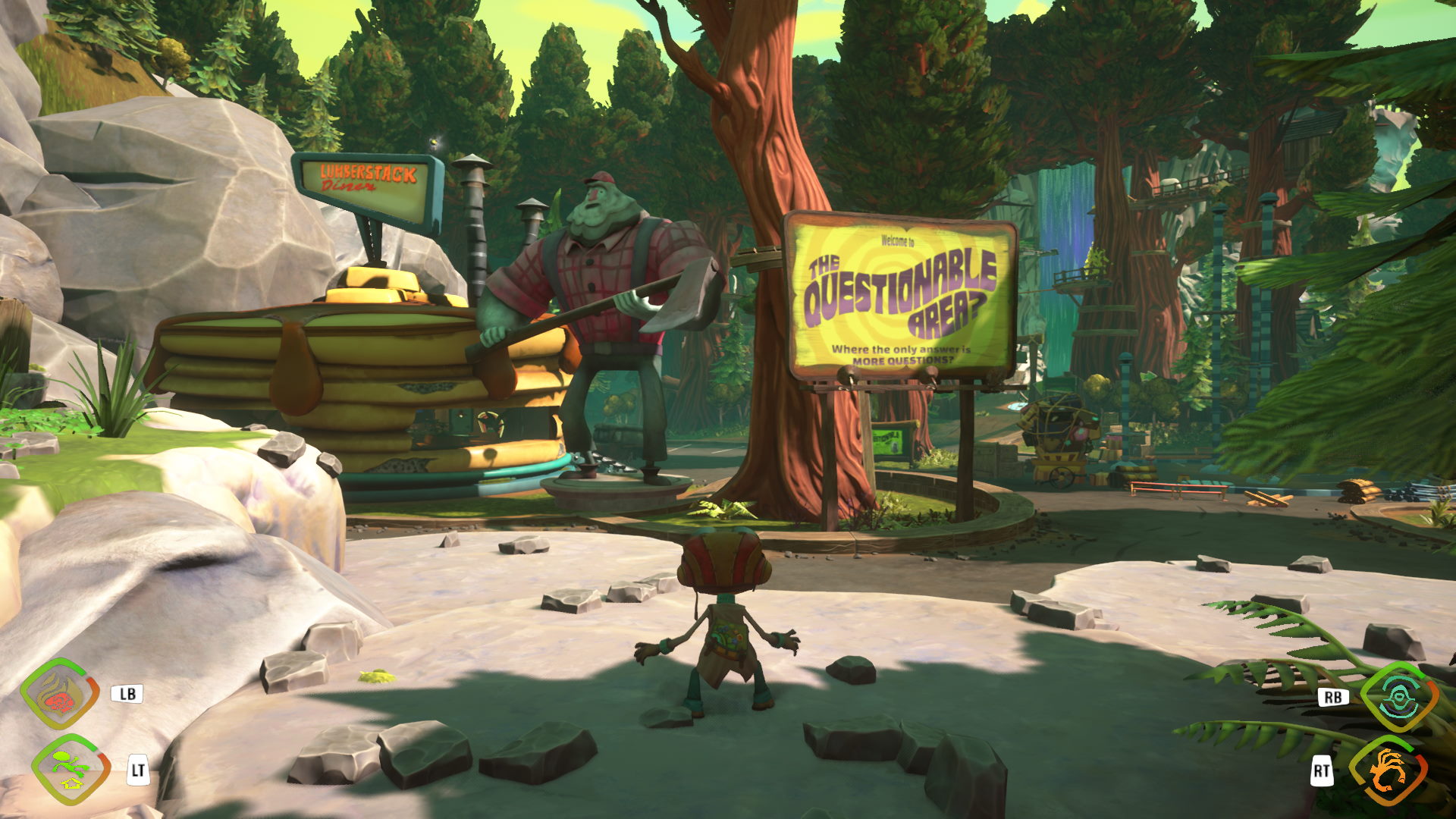 Játékmechanikáját nézve akár még a Collect-A-Thon jelző is ráakasztható lenne, de elmondom, miért nem húznám rá ezt a jelzőt. A játék során különféle mentális képességeket kapunk, ezeket a cserkészeket idéző kitűzők segítségével jelölik. Ezt a nyolc darab úgynevezett Merit Badge-t tudjuk majd fejleszteni több szinten keresztül. Az alapfunkciójukat betöltik szintezés nélkül is, így akár opcionálisnak is mondhatók. Ahhoz, hogy szintet lépjünk, PSI Cardokat fogunk szedegetni a világban, és ebből egy paklit összerakva kapunk majd pontot.