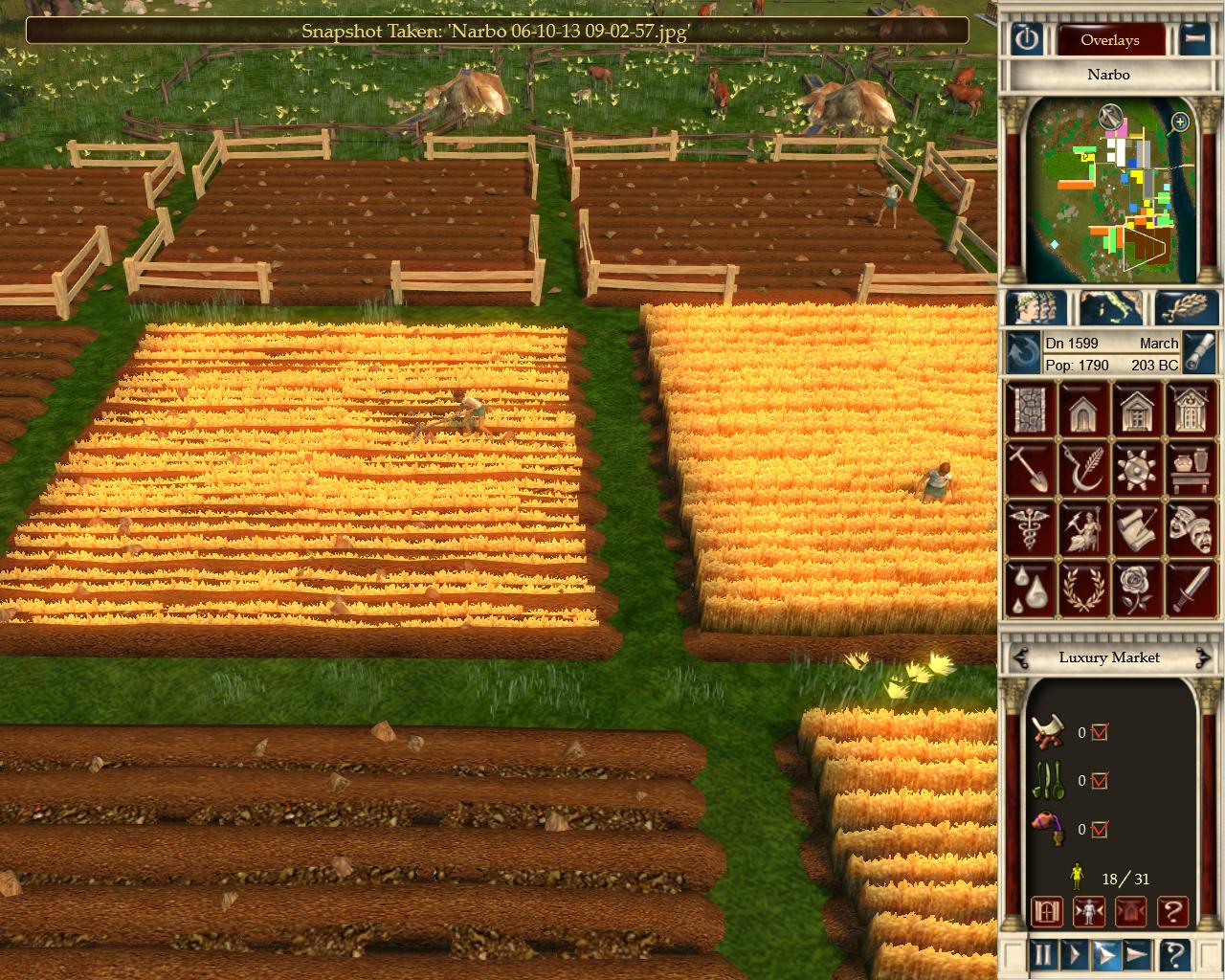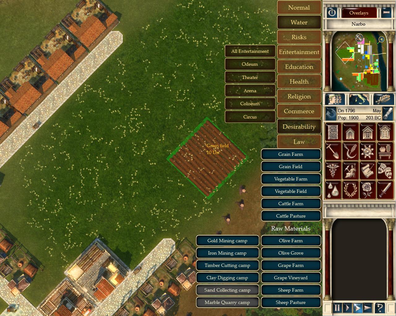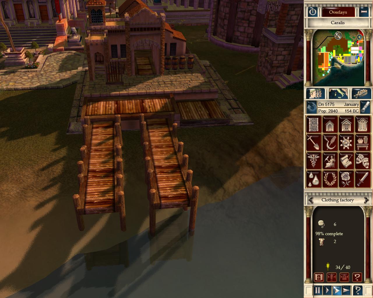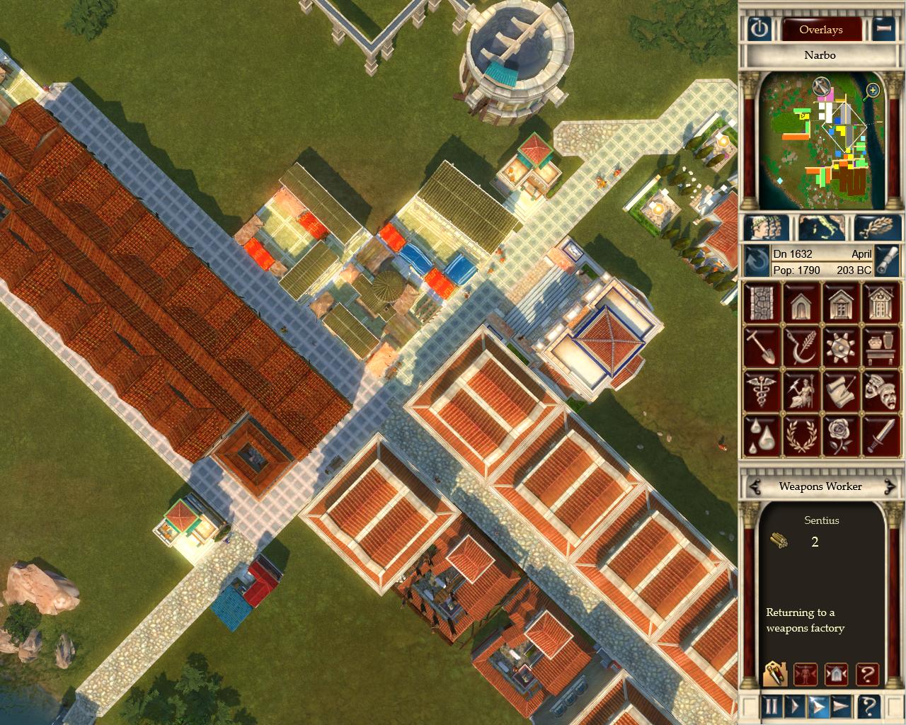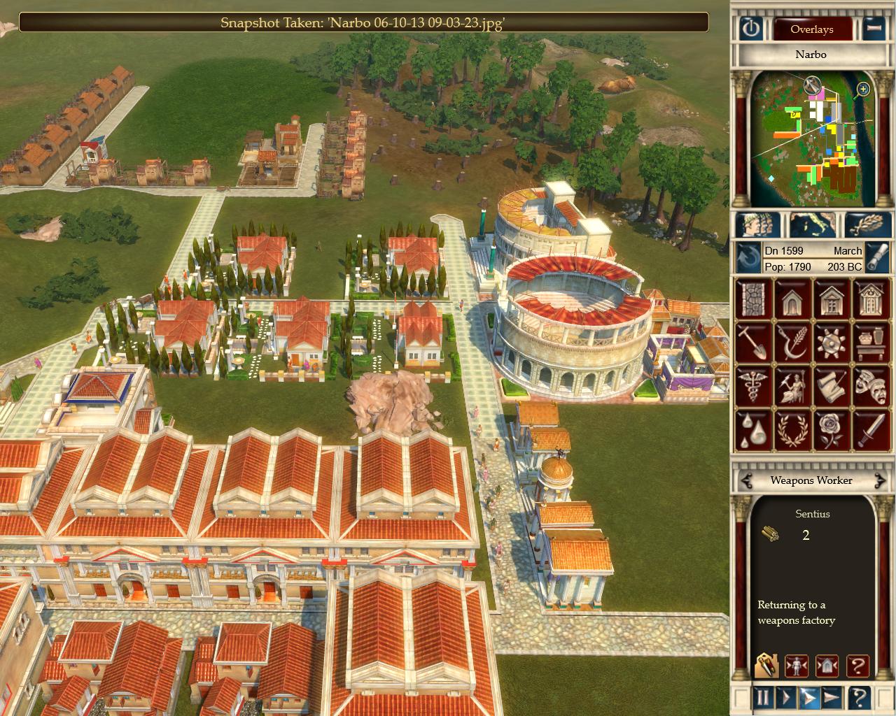 Ha már stabilizálódott a gazdaságunk, akkor rátérhetünk a fejlesztésre, színház, aréna, könyvtár, extra termékek gyártása, szobrok, parkok emelése, cifrázás. Ilyenkorra már a Cézár biztosan többször lesarcolt minket valamivel, ami általában a helyi adottságoknak megfelelő kérés, tehát ha egy bőtermő szcenáriót lakunk be épp, akkor valószínű, hogy búzát kér, ha egy kereskedelmi csomópont építése a cél, akkor pénzt, ha pedig invázió vagy védelem a feladat, akkor a sereget kell megtámogatni kicsit.