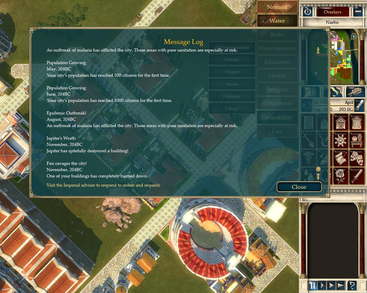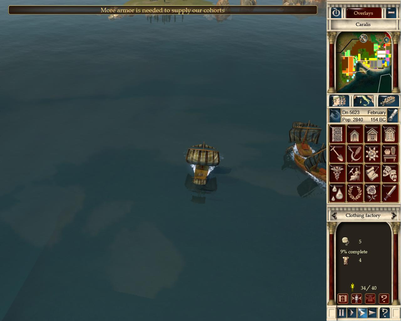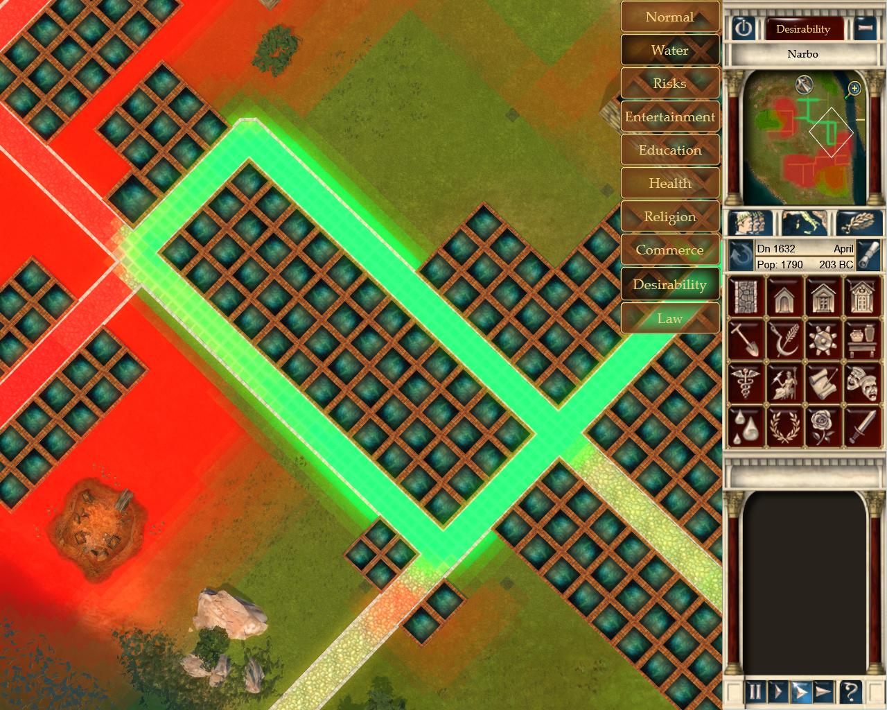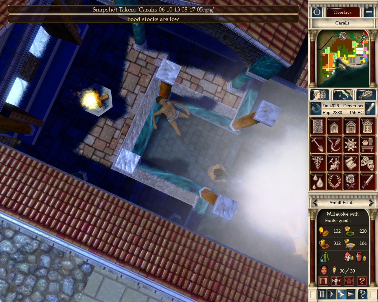 Ha már stabilizálódott a gazdaságunk, akkor rátérhetünk a fejlesztésre, színház, aréna, könyvtár, extra termékek gyártása, szobrok, parkok emelése, cifrázás. Ilyenkorra már a Cézár biztosan többször lesarcolt minket valamivel, ami általában a helyi adottságoknak megfelelő kérés, tehát ha egy bőtermő szcenáriót lakunk be épp, akkor valószínű, hogy búzát kér, ha egy kereskedelmi csomópont építése a cél, akkor pénzt, ha pedig invázió vagy védelem a feladat, akkor a sereget kell megtámogatni kicsit.