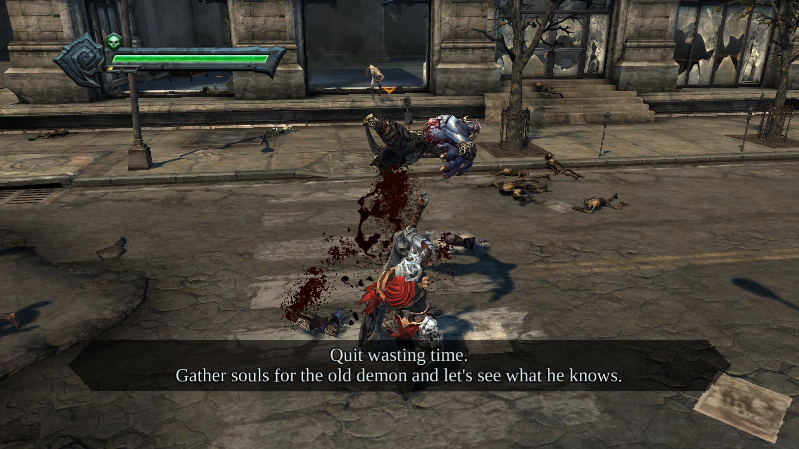 A gyengébb ellenfeleket (például a zombikat) legyengíteni sem kell, elég csak a használ gombot megnyomni, és hősünk eléggé kegyetlen módon tesz pontot a teremtmény létezésének végére (fejösszeroppantás és egyéb nyalánkságok). Karakterünk alapból mindig a hozzá legközelebb álló ellenfelét támadja, de lehetőségünk van befogni (lockolni) is őket, és ha egyszerre többen vannak a képernyőn (szinte mindig), akkor a befogó gombbal váltogathatunk is közöttük. Azt érdemes megjegyezni, hogy az automatikus rendszer tökéletesen működik, inkább érdemesebb azt használni. Hősünk képes villámgyorsan helyet változtatni (dash), mely a keményebb ellenfelek támadásainak kikerüléséhez nélkülözhetetlen.