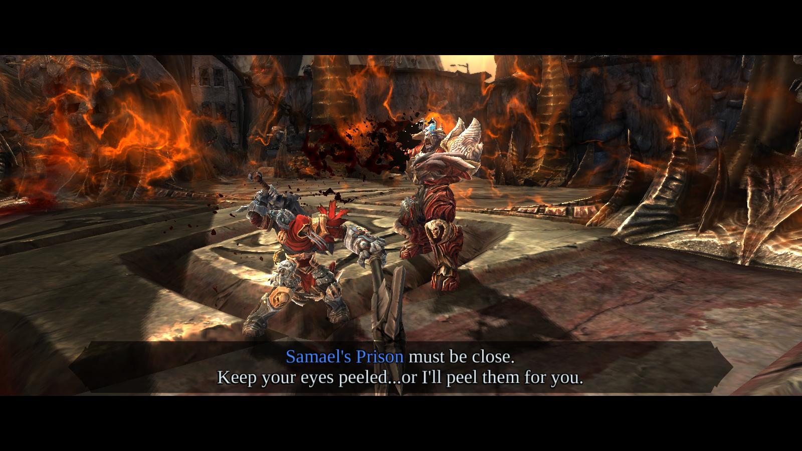 A program kezdetben egy akcióorientált játéknak tűnik, de később rájövünk, hogy a Darksiders ennél sokkal több; persze az tény, hogy rengeteg harcban lesz részünk. Az összecsapások igen látványosak, hősünk szépen animált mozdulatokkal aprít szét mindenkit, aki az útjába kerül. Ezt egy elsődleges és egy másodlagos támadással tehetjük meg, amiket értelemszerűen kombinálhatunk is. Ha kellően legyengítettük áldozatunkat, akkor megjelenik fölötte egy szimbólum, és ha megnyomjuk a megfelelő gombot, Háború egy látványos mozdulattal kivégzi a célpontot.