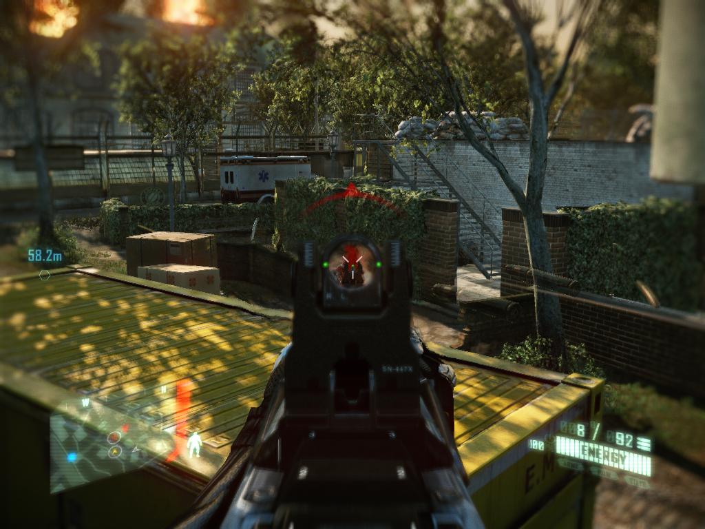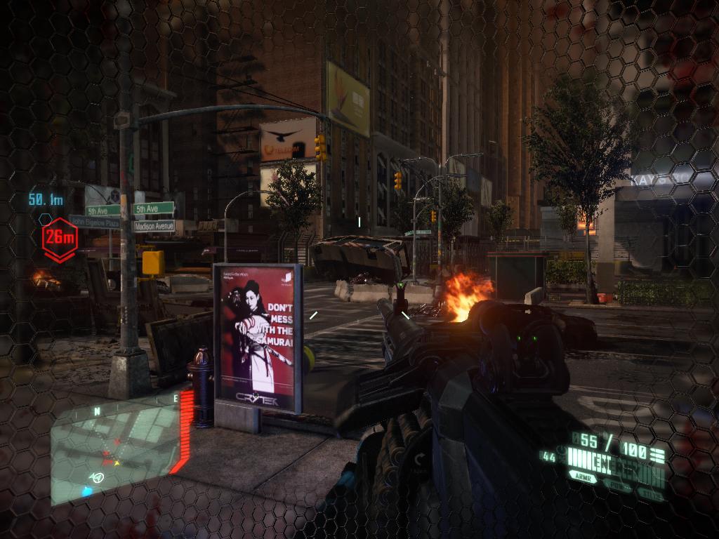 Kétségtelen tény, hogy még DirectX 9 alatt is csodálatos a látvány, ám hangsúlyoznám, nem éreztem akkor áll-leejtést, mint amit az első rész betöltése után sikerült. Ennek ellenére természetesen megérdemli az öt csillagot, egyrészt mert a Crytek megtanult optimalizálni - az átlagos gépigénynél kicsivel jobb gépen masszív 60 fps-sel futott a játék -, és mert így is csodálatos, hangulatos és nem mellesleg hatásos a külleme. A romokban heverő New York hihetetlenül hangulatosra sikeredett, már-már komolyan elhiszi a játékos, hogy megtörtént esetről van szó és az események középpontjában ő a kulcsfigura.