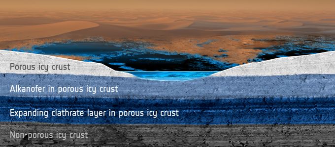 A nemzetközi kutatócsoport szerint a Titán felszíne alatt felgyülemlő klatrátok fokozatosan megváltoztatják a folyékony szénhidrogénnel teli tározók kémiai összetételét, amelyekben propán vagy etán gyülemlik fel, majd a felszín felé vándorol. Az ilyen forrásokból táplálkozó tavak és tengerek összetétele egészen más lesz, mint azoké, amelyek fennmaradásukat a csapadékoknak köszönhetik, utóbbiak metánt, nitrogént, valamint nyomokban argont és szén-monoxidot tartalmaznak.