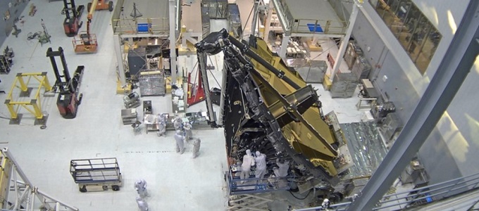A 18 különböző szegmensből álló, többek között berillium felhasználásával elkészült, 6,4 méter széles ultrakönnyű szerkezet teljes valóságában pózolt a webkamerák előtt, a Twitteren közölt rövid videóban pedig még az épület belsejét is némileg megmutató tükröződést is szemügyre vehetjük. A NASA emberei joggal büszkék az elkészült szerkezetre, amelynek 18 szegmensét korábban egyenként tesztelték le, most azonban a Johnson Űrközpontba szállítják majd át azt, hogy immár összeszerelt állapotban vessék alá a különböző kísérleteknek, amelyek során arra igyekeznek majd választ kapni, hogy a fellövés alatt jelentkező komoly vibráció után, valamint az abszolút nullához (−273.15 Celsius-fok) közeli tartományban sem lesz probléma az üzemeléssel.
