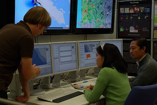 A riasztórendszer legfontosabb része a jakartai meteorológiai és geofizikai intézet újonnan kialakított számítástechnikai központja. A német kormány 52 millió eurót fektetett a központba - a hajózás és űrhajózás német központja (DLR) és a brémai Alfred Wegener Intézet is kivette részét a fejlesztésből. A DLR által kifejlesztett DSS (Decision Support System) elnevezésű szoftver összegyűjti a mérőállomások adatait, majd előzetes szimulációk alapján eldönti, szükség van-e a cunamiriadóra.