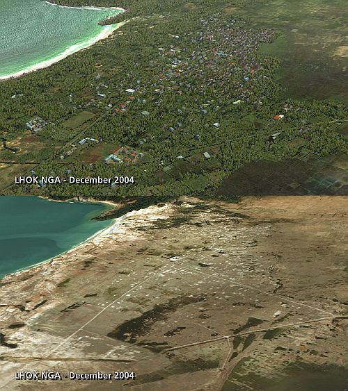 Műholdfelvétel az indonéz Nga városról a szökőár előtt és után