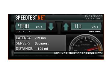 Sajnos egyelőre vegyes érzéseim vannak az emeléssel kapcsolatban, tegnap óta már 5 megabites emelt netem van, de az esti órákban a letöltési sebesség 2-4 megabit között ingadozik (a képen az imént mért sebesség látszik), és a feltöltés is lassabb mint az elvárható...