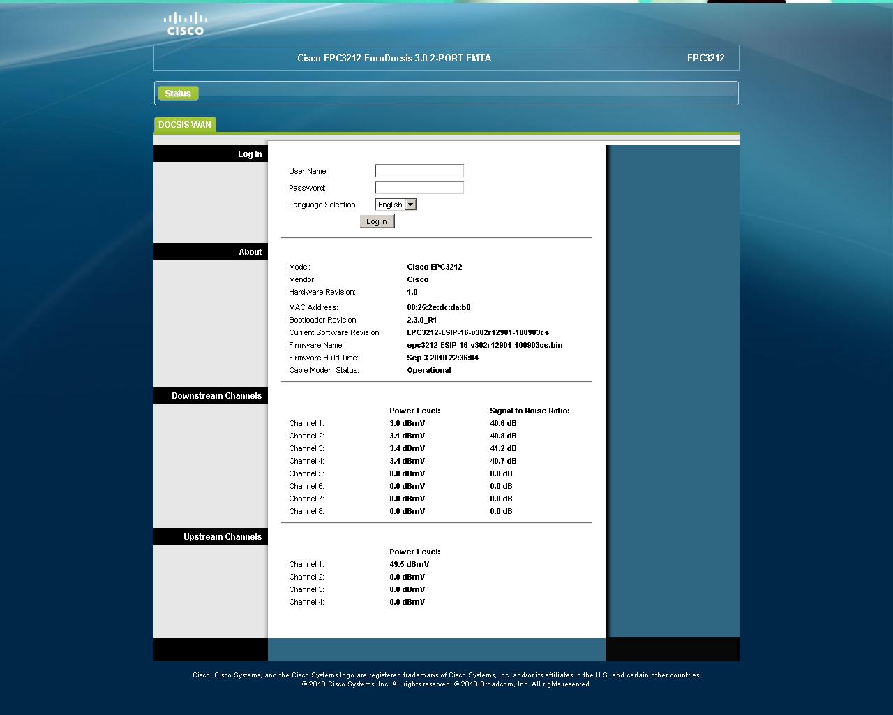 Notram #20552 Sziasztok, a kérdésem az lenne, hogy a modemem egy Cisco EPC3212, a diagnosztikai oldala ugye http://192.168.100.1/ , és ide milyen username - password-del lehet belépni? -