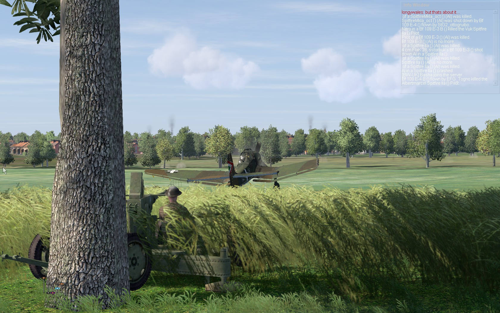 5./JG27_Farber panaszkodott arra (SoWC szerver admin), hogy az ATAGosoknak elgurult a gyógyszerük, valami 20000 objectum van szétszórva a pályán, ráadásul mostanában úgy teleszórták légvédelemmel az angol partokat, hogy nekik a gépveszteségek nagy százaléka Bofors miatt van. Szidja is őket rendesen. Az a baj, hogy ezeket a küldiket nem tárolja a cache, nem tudom megnézni, hogy tényleg mennyi légvédelmet pakoltak ki. -
