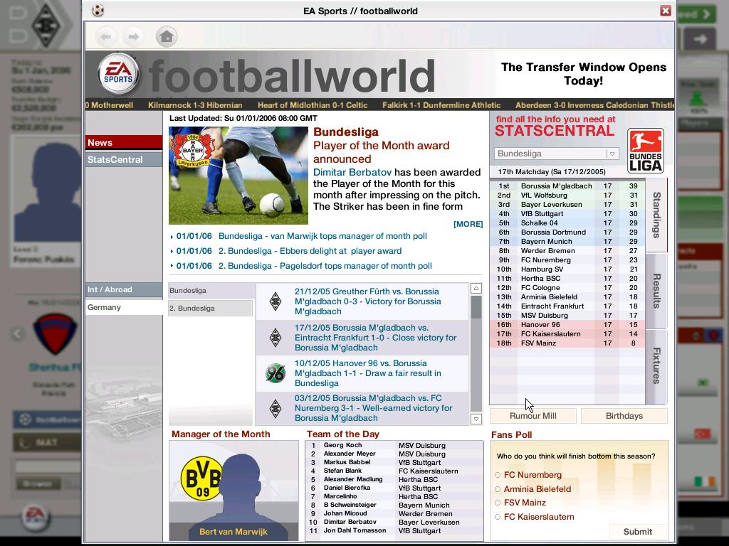 A 17 forduló végeztével az 1helyen állok 39ponttal mögöttem a Wolsburg-nak van 31pontja és követi a többi csapat elég szorosan(holnapra linkelek be majd képeket is)