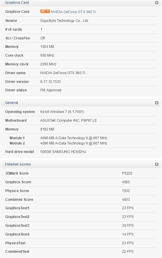 Hát az előző (és a mostani legtöbb) kártyához képest igen nyomorékul néz ki, de az értékei számomra meggyőzőek (5220 pont), 32 C°-on megy a GPU (üresjáraton, stressz teszt alatt 40-42).