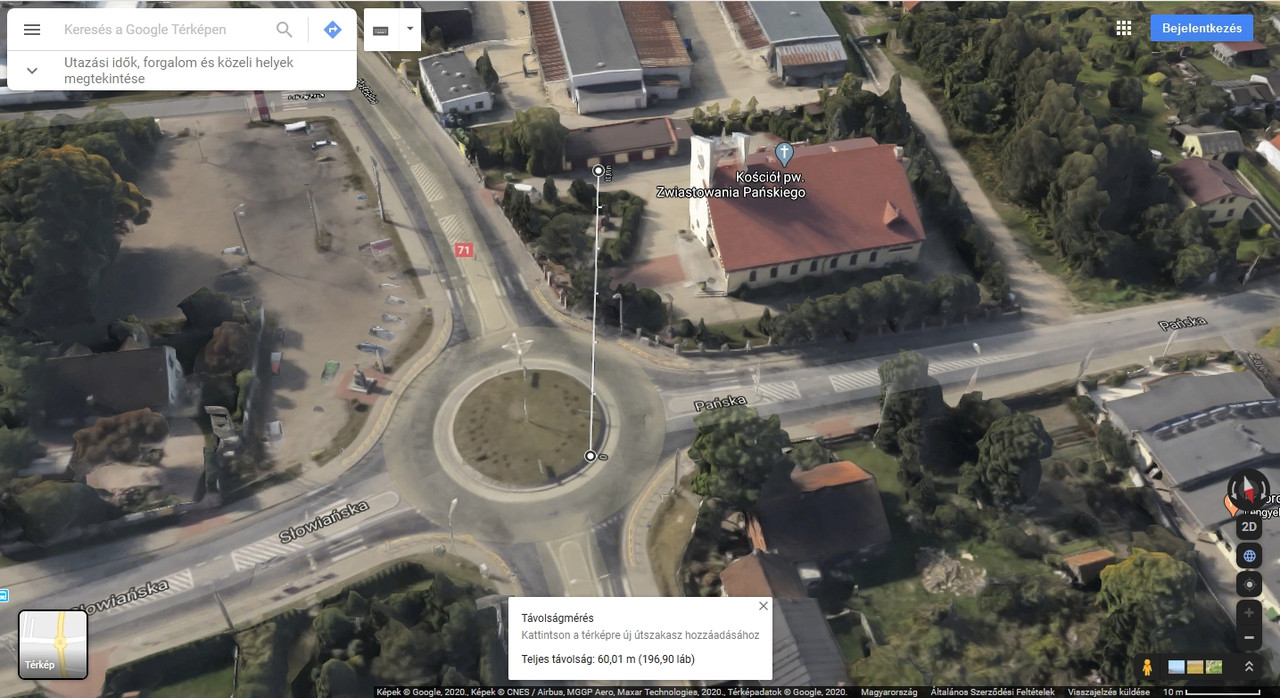 kb 60 méter ahogy nézem, kicsivel lehet több is sikerült volna, de útban volt az épület.