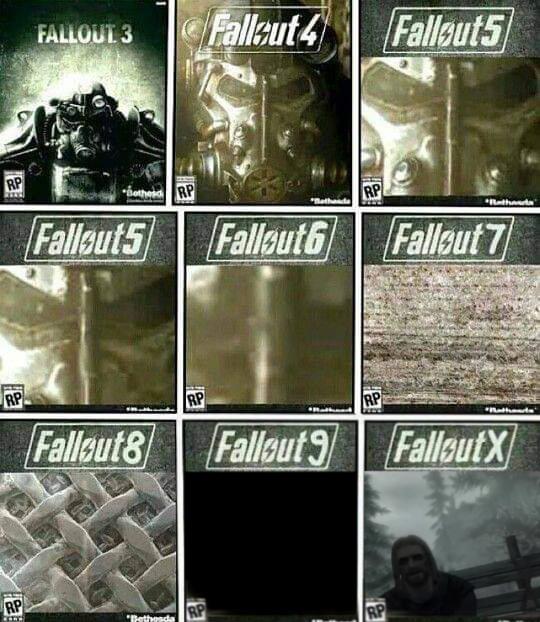 Kódia #373995 Arra próbál utalni, hogy az egyre növekvő részekkel, a borítón egyre közelebb látszik a Power Armor sisak. Végül már annyira közel, hogy átkerülsz egy másik dimenzióba, ami meg már a Skyrim eleje, amiről százával vannak mémek. Hogy az 5. rész miért van kétszer, az gondolom azért van, mert a szerzőnek se humora, se esze. -