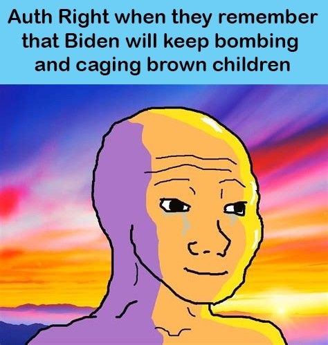 2028 Novembere, elnökválasztás. A megmaradt trump hívő még mindig papagáj módjára azt ismételgeti, hogy Biden bármikor feldobhatja a pacskert, vagy lemond Kamala javára. #facepalm -
